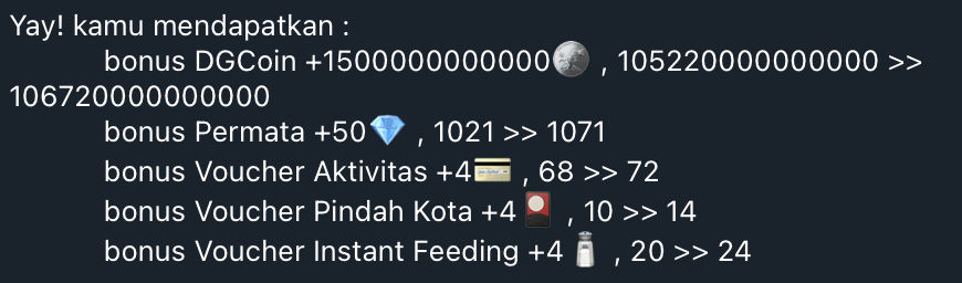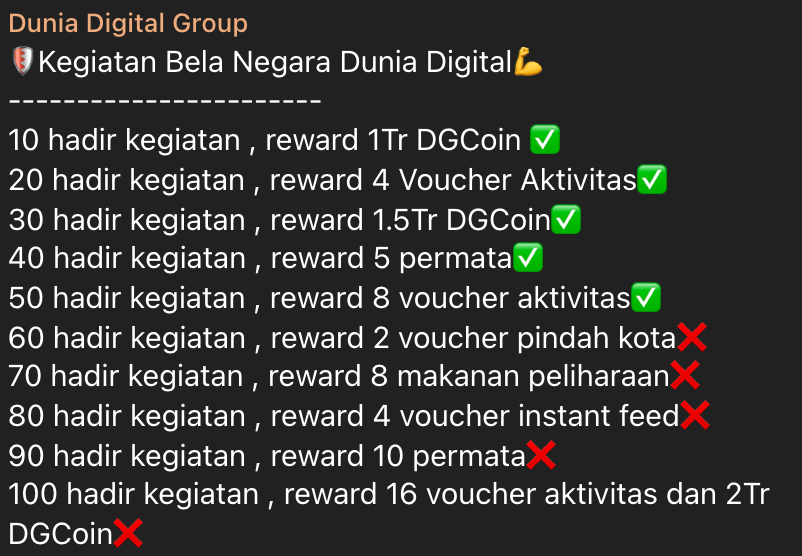 - Bagi warga yang berulang tahun akan mendapatkan kado dari DuDi berupa DGCoin, Permata , dll.