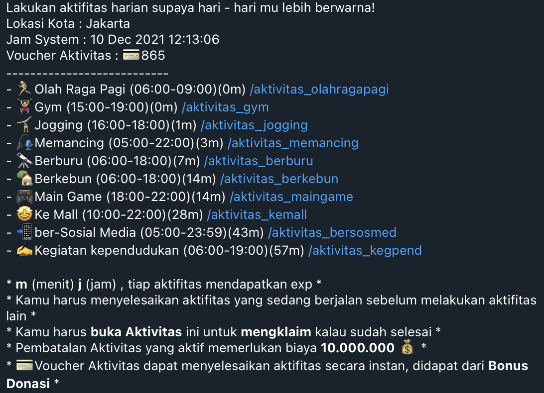 - Jika akun sudah 4x24 jam (minus dgcash) dan tidak ada aktifitas untuk klaim usaha/kegiatan , maka akun akan disuspend karena sudah dianggap tidak aktif kembali sehingga dinyatakan RIP. Untuk menghidupkan kembali dengan melakukan donasi.